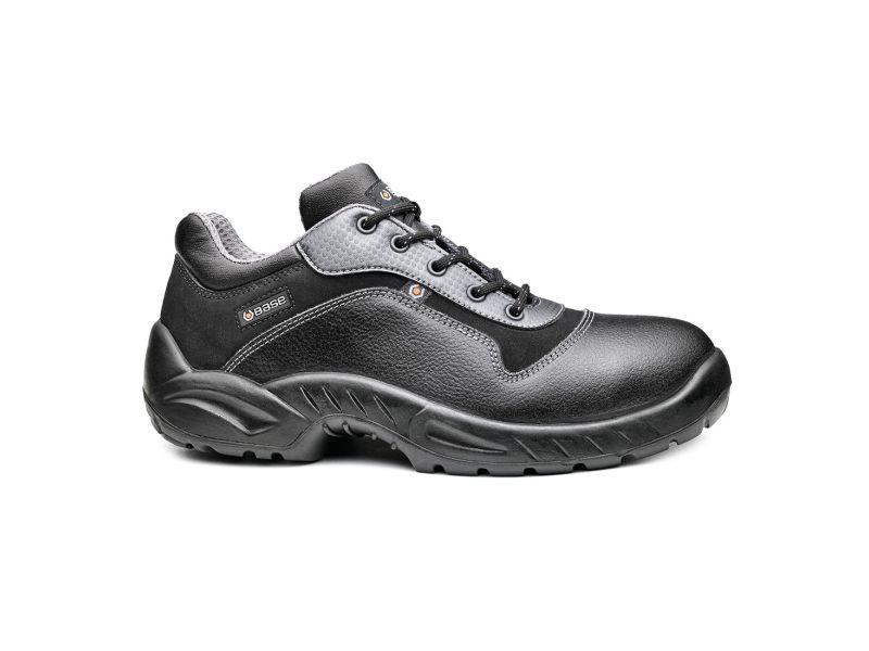 Base S3 munkavédelmi cipő magasabb vízálló tulajdonsággal rendelkező színbőr felsőrésszel. Acél orrvédelemmel és kompozit talpátszúrás elleni védelemmel ellátott, ütéscsillapítás a saroknál. Antisztatikus és szénhidrogéneknek ellenálló egyedi kialakítású talp, a férfi és női lábnak megfelelő külön kapli szélességgel is választható. Javasolt felhasználási területek: nehézipar, fémipar, könnyűipar, mezőgazdaság, építőipar. Felhasznált anyagok és technológiák: Felsőrész: Vízálló színbőr.Bélés: SmellStop szagsemlegesítő és antibakteriális technológiával.Középtalp: Fresh'n Flex technológiával. Kapli: Acélból. Talp: Fáradtsággátló AirTech+TPU Skin technológiával.