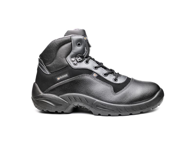 Base S3 munkavédelmi bakancs magasabb vízálló tulajdonsággal rendelkező színbőr felsőrésszel. Acél orrvédelemmel és kompozit talpátszúrás elleni védelemmel ellátott, ütéscsillapítás a saroknál. Antisztatikus és szénhidrogéneknek ellenálló egyedi kialakítású talp, a férfi és női lábnak megfelelő külön kapli szélességgel is választható. Javasolt felhasználási területek: nehézipar, fémipar, könnyűipar, mezőgazdaság, építőipar. Felhasznált anyagok és technológiák: Felsőrész: Vízálló színbőr.Bélés: SmellStop szagsemlegesítő és antibakteriális technológiával.Középtalp: Fresh'n Flex technológiával. Kapli: Acélból. Talp: Fáradtsággátló AirTech+TPU Skin technológiával.