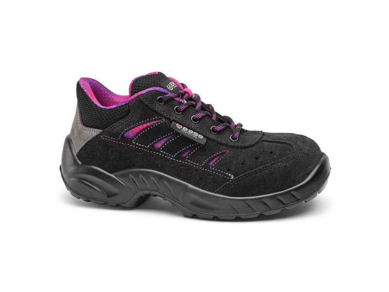 Base S1P munkavédelmi cipő nők részére hasított bőr felsőrésszel. A minél nagyobb tartósság érdekében orrborítással rendelkezik. Acél orrvédelemmel ellátott, ütéscsillapítás a saroknál. Antisztatikus és szénhidrogéneknek ellenálló egyedi kialakítású talp.Javasolt felhasználási területek: nehézipar, könnyűipar, mezőgazdaság, logisztika, szolgáltatóipar. Felhasznált anyagok és technológiák: Felsőrész: Velúrbőr.Bélés: SmellStop szagsemlegesítő és antibakteriális technológiával. Kapli: Acélból. Középtalp: Fresh'n Flex acél talpátszúrás elleni védelemmel. Talp: Fáradtsággátló AirTech egysűrűségű technológiával.