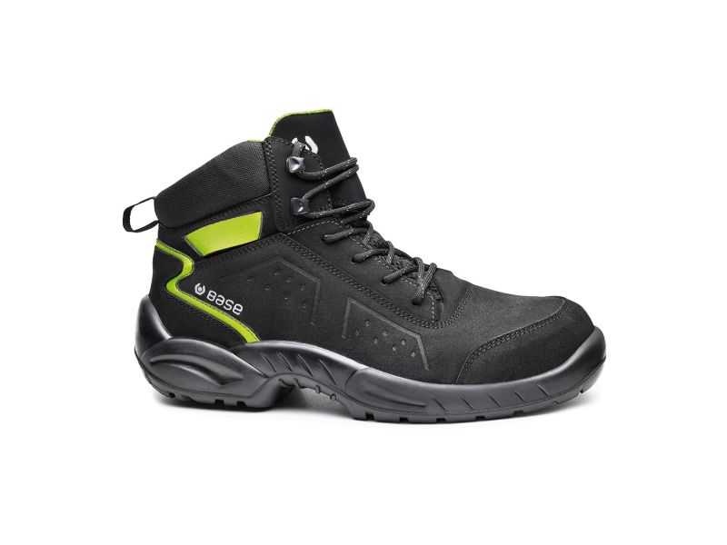 Base S3 munkavédelmi bakancs magasabb vízálló tulajdonsággal rendelkező Nabutek bőr felsőrésszel. Acél orrvédelemmel és kompozit talpátszúrás elleni védelemmel ellátott, ütéscsillapítás a saroknál. Antisztatikus és szénhidrogéneknek ellenálló egyedi kialakítású talp, a férfi és női lábnak megfelelő külön kapli szélességgel is választható. Javasolt felhasználási területek: könnyűipar, mezőgazdaság, építőipar, szolgáltatóipar logisztika. Felhasznált anyagok és technológiák: Felsőrész: Nabutek technikai bőr.Bélés: SmellStop szagsemlegesítő és antibakteriális technológiával.Középtalp: Fresh'n Flex technológiával. Kapli: Acélból. Talp: Fáradtsággátló AirTech+TPU Skin technológiával.