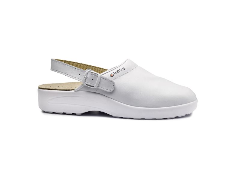 Base OB munkavédelmi papucs bőr felsőrésszel. Ütéscsillapítás a saroknál. A férfi és női lábnak megfelelő külön kapli szélességgel is választható. Javasolt felhasználási területek: könnyűipar, kereskedelem, szolgáltatóipar, élelmiszeripar, egészségügy. Felhasznált anyagok és technológiák: Felsőrész: Bőr. Bélés: velúrbőr. Talp: Egysűrűségű PU.