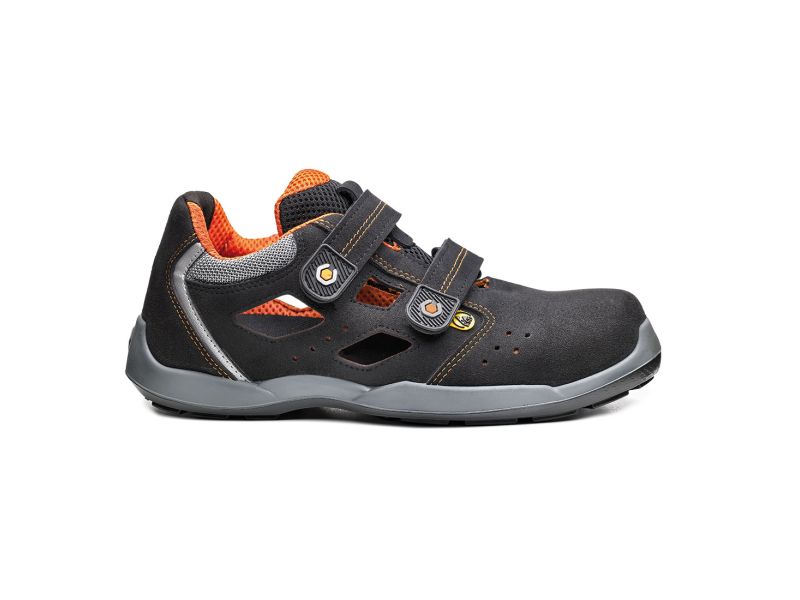 Base S1P munkavédelmi szandál mikrofibre felsőrésszel, ESD tulajdonsággal. Kompozit orrvédelemmel és kompozit talpátszúrás elleni védelemmel ellátott, ütéscsillapítás a saroknál. Antisztatikus és szénhidrogéneknek ellenálló egyedi kialakítású talp, a férfi és női lábnak megfelelő külön kapli szélességgel is választható. Javasolt felhasználási területek: elektronikai ipar, könnyűipar, kereskedelem, szolgáltatóipar, logisztika. Felhasznált anyagok és technológiák: Felsőrész: Microfibre. Bélés: SmellStop szagsemlegesítő és antibakteriális technológiával. Kapli: SlimCap technológiával. Középtalp: Fresh'n Flex talpátszúrás elleni védelemmel. Talp: Fáradtsággátló AirTech+TPU-Skin technológiával.