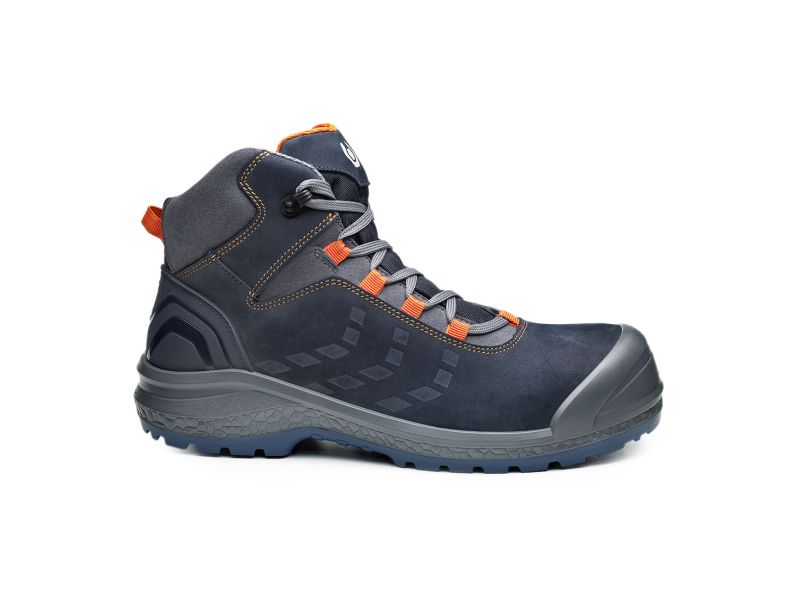 Base S3 munkavédelmi bakancs, magasabb vízálló tulajdonsággal rendelkező nubukbőr felsőrésszel. Kompozit orrvédelemmel és kompozit talpátszúrás elleni védelemmel ellátott, ütéscsillapítás a saroknál. A minél nagyobb tartósság érdekében orrborítással rendelkezik. Antisztatikus és szénhidrogéneknek ellenálló egyedi kialakítású talp. Javasolt felhasználási területek: nehézipar, fémipar, építőipar, út-, és vasútépítés. Felhasznált anyagok és technológiák: Felsőrész: Vízálló nubukbőr. Bélés: SmellStop szagsemlegesítő és antibakteriális technológiával.Kapli: SlimCap technológiával. Középtalp: Fresh'n Flex talpátszúrás elleni védelemmel. Talp: Fáradtsággátló AirTech+TPU-Skin+4x4 technológiával.