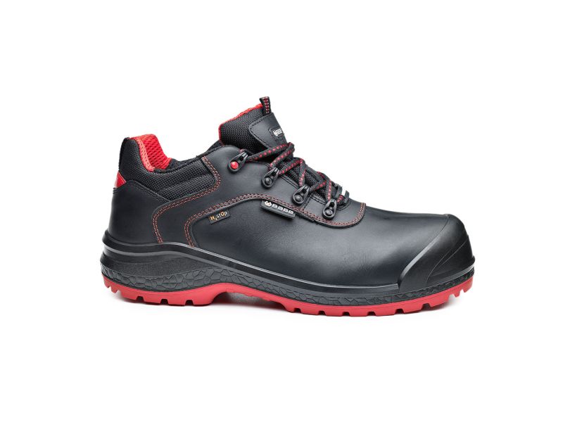 Base S3 munkavédelmi cipő magasabb vízálló tulajdonsággal színbőr felsőrésszel és H2st0p membránnal. Kompozit orrvédelemmel és kompozit talpátszúrás elleni védelemmel ellátott, ütéscsillapítás a saroknál. A minél nagyobb tartósság érdekében orrborítással rendelkezik. Antisztatikus és szénhidrogéneknek ellenálló egyedi kialakítású talp. Javasolt felhasználási területek: nehézipar, fémipar, könnyűipar, mezőgazdaság, építőipar. Felhasznált anyagok és technológiák: Felsőrész: Vízálló színbőr H2st0p membránnal. Bélés: SmellStop szagsemlegesítő és antibakteriális technológiával. Kapli: SlimCap technológiával. Talp: AirTech dupla sűrűségű PU/HRO gumi és Life Plus technológiával.