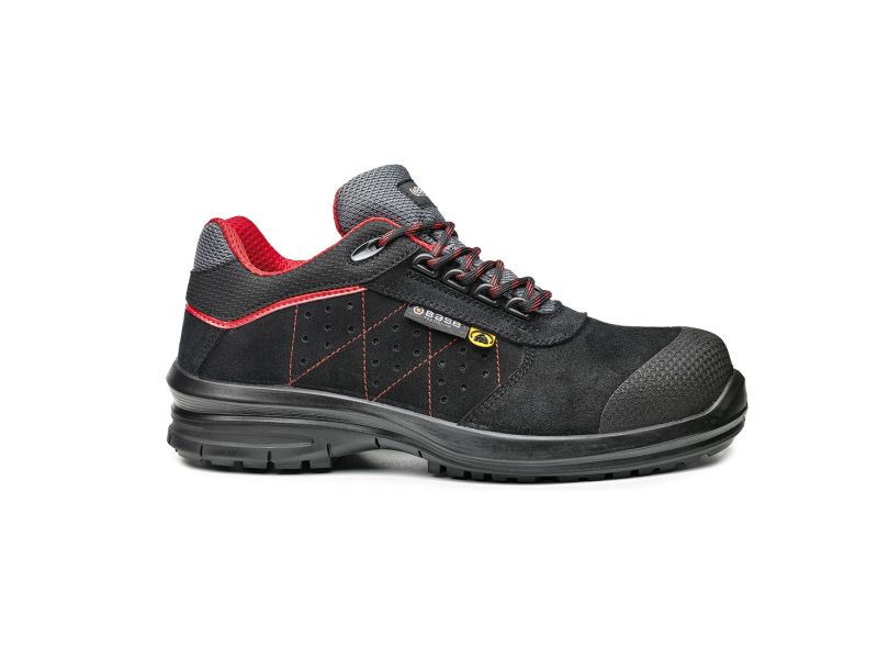 Base S1P munkavédelmi cipő hasított bőr felsőrésszel, ESD tulajdonsággal. Kompozit orrvédelemmel és kompozit talpátszúrás elleni védelemmel ellátott, ütéscsillapítás a saroknál. A minél nagyobb tartósság érdekében orrborítással rendelkezik. Antisztatikus és szénhidrogéneknek ellenálló egyedi kialakítású talp,a férfi és női lábnak megfelelő külön kapli szélességgel is választható. Javasolt felhasználási területek: könnyűipar, elektronika, mezőgazdaság, logisztika. Felhasznált anyagok és technológiák: Felsőrész: hasított bőr. Bélés: SmellStop szagsemlegesítő és antibakteriális technológiával. Középtalp: Fres'n Flex technológiával. Kapli: SlimCap technológiával. Talp: Fáradtsággátló AirTech egysűrűségű technológiával.