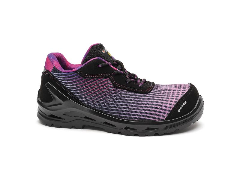 Base S1P munkavédelmi cipő nők részére magasabb vízálló képességű technikai textil és mikroszálas felsőrésszel, ESD tulajdonsággal. Kompozit orrvédelemmel és talpátszúrás elleni védelemmel ellátott, ütéscsillapítás a saroknál. A minél nagyobb védelem érdekében orrborítással rendelkezik. Javasolt felhasználási területek: elektronika, könnyűipar, kereskedelem, szolgáltatóipar, logisztika. Felhasznált anyagok és technológiák: Felsőrész: Technikai textil és mikroszálas microfibre. Bélés: SmellStop szagsemlegesítő és antibakteriális technológiával. Kapli: SlimCap technológiával. Középtalp: Fresh'n Flex talpátszúrás elleni védelemmel. Talp: Fáradtsággátló AirTech+TPU-Skin technológiával.