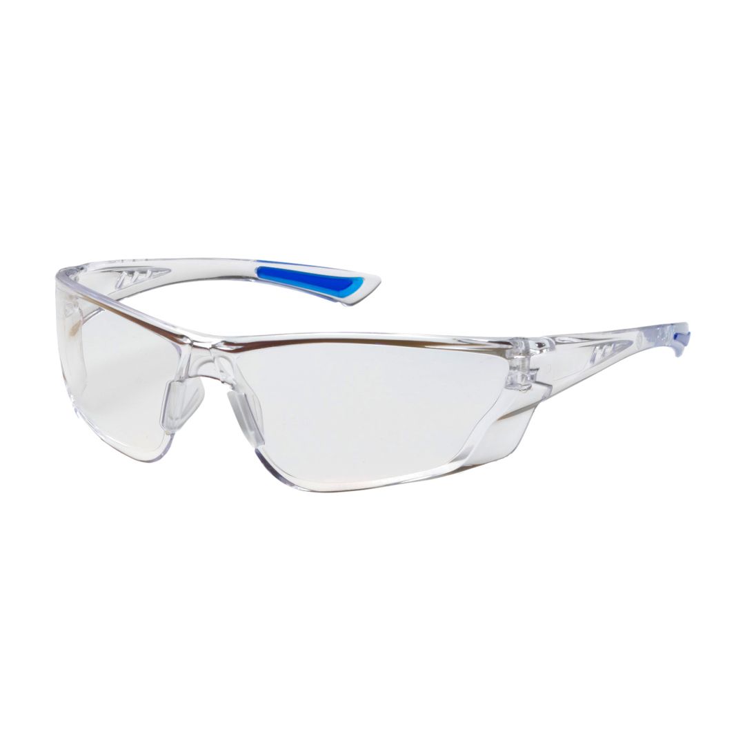 Keret nélküli védőszemüveg átlátszó szárakkal, átlátszó lencsével és karcálló/páramentes bevonattal. Divatos keret nélküli kialakítása, csúszásmentes orrnyerge maximális kényelmet biztosít. JELLEMZŐK: Az egész napos kényelmet a könnyű, keret nélküli kialakítás adja. Rugalmas bajonett és párnázott szárakkal ellátott a csúszásmentes illeszkedésért. Állítható gumírozott orrnyereg biztosítja a további kényelmet. Átlátszó lencsével. 9 bázisú ívelt lencse. Megfelel az ANSI Z87.1+ szabványnak. Megfelel a CSA Z94.3 szabványnak.