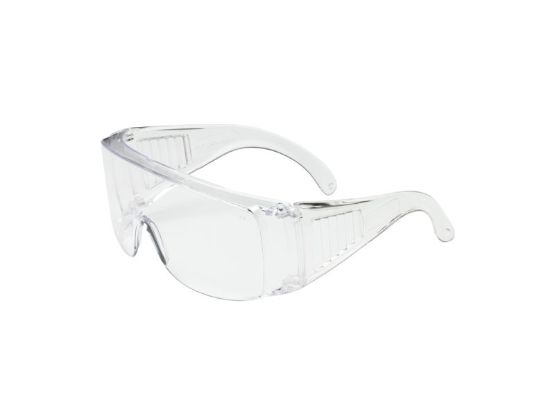 Szemüvegre helyezhető védőszemüveg átlátszó szárakkal és átlátszó lencsével általános gyártási, építési és beltéri munkához. JELLEMZŐK: Polikarbonát lencsék. Minden szemüveg felé felhelyezhető, de önállóan is használható. A formázott orrnyereg a legtöbb felhasználónak kényelmes illeszkedést biztosít. A párásodás csökkentése érdekében a szárakon szellőző nyílások vannak. 4 bázisú ívelt lencse.