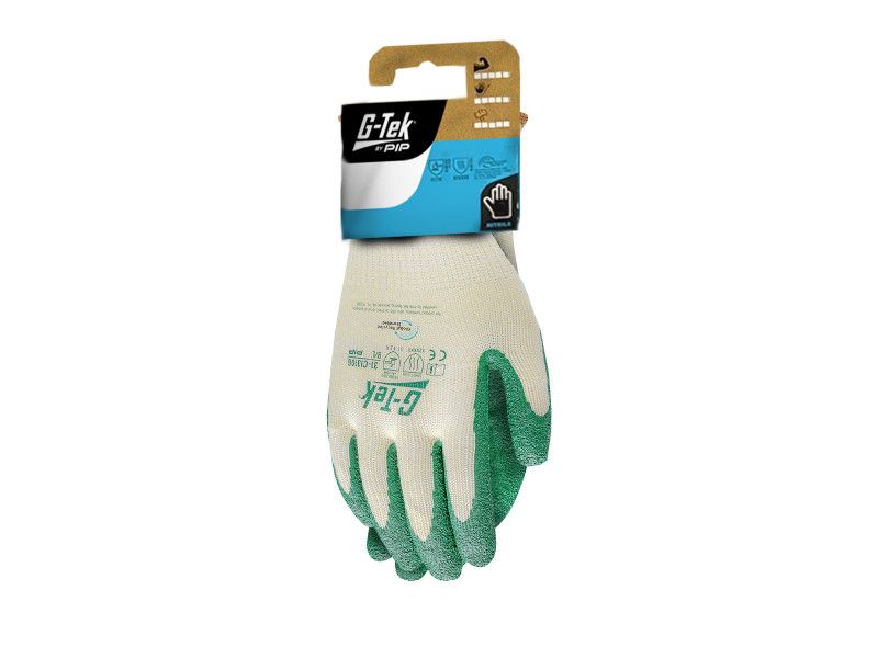 - GTEK-31-C1310GT-EN-10 - G-TEK újrahasznosított poliészter, latex tenyérmártott munkavédelmi kesztyű - bliszteres