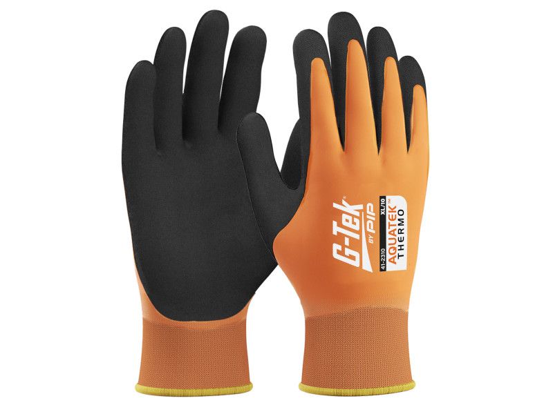 G-TEK Aquatek THERMO munkavédelmi kesztyű – Vízálló védelem hidegbenA G-TEK Aquatek THERMO munkavédelmi kesztyű dupla latex bevonattal és meleg akril/poliészter béléssel készült, amely ideális hideg és nedves munkakörnyezethez.Főbb jellemzők:Bevonat: teljes kézborítású, folyadéktaszító latex + habos latex tenyérmártás – kiváló vízállóság és tapadásBélés: meleg akril/poliészter – hőszigetelés hidegbenKialakítás: varratmentes szerkezet és zárt mandzsetta – kényelmes és higiénikus viseletTapadás: optimális száraz és nedves körülmények között isAlkalmazási területek:hideg raktárak, hűtőházakkültéri szerelési vagy szállítási feladatoképítőipari munkák nedves környezetbenA G-TEK Aquatek THERMO kesztyű megbízható társ a nedves, hideg munkaterületeken, ahol a vízállóság, melegség és biztonság elsődleges szempont.