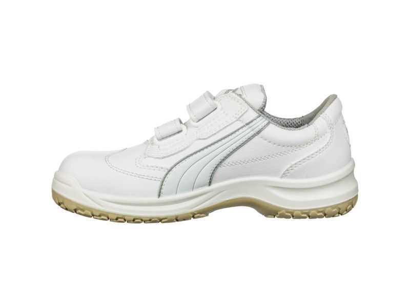 N SERVICE termékcsalád különlegessége az IQ.CELL, egy közvetlenül a sarokrészbe ágyazott gélpárna, amely trambulinként működik. Elnyeli az ütéseket, elnyeli az energiát, majd azonnal visszaadja azt visszapattanás formájában.Főbb jellemzők:IQ.CELL technológia: Energiavisszaadás és ütéselnyelés a gélpárnának köszönhetően.Tépőzáras kialakítás: Praktikus és könnyen használható.Kopásálló külső talp: Rugalmas és könnyű, csúszásgátló méhsejt szerkezettel a folyadék elvezetéséhez.Ideális munkakörnyezet: Konyhákban, laboratóriumokban vagy más csempézett munkaterületeken való használatra.Ez a PUMA WHITE '