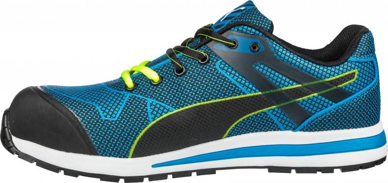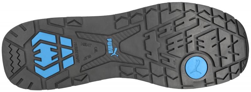 Safety Knit és az Urban Protect termékcsalád tagja. SAFETY KNIT® felsőrész, egy ultrarugalmas egybe szőtt textil elem, mely úgy illeszkedik a cipő viselőjének lábához, mintha csak egy zoknit viselne. Dizájn kialakítása, akár utcai viseletet is megengedne a terméknek. Divatos, fiatalos, stílusos. A cipő teljesen fémmentes, energiaelnyelő IdCELL sarokkal mely könnyed rugalmasságot biztosít. Evercushion BA talpbetéte elnyeli az izzadságot és segít a megfelelő klímát kialakítani a láb körül. A cipő gumi talpa 300°C -ig hőálló, kialakítása pedig elősegíti a csúszásmentességet. Viselőjének védelméről a könnyű üvegszálas orrmerevítő gondoskodik valamint a hajlékony kerámiaszálas talpátszúrás elleni védelem (FAP®), mely a hagyományos acéllal szemben a cipő talpának is rugalmasságot biztosít. Ez a Puma munkavédelmi cipő egy speciális forgási ponttal van a ellátva a talp elülső részén, ez a termék azon részén található amely a sok sétával járó munkavégzés során a leginkább elhasználódik. A forgási pont megerősítésével a védőcipő csökkenti a súrlódást így a cipő viselőjének lényegesen kevesebb energiát kell kifejtenie.