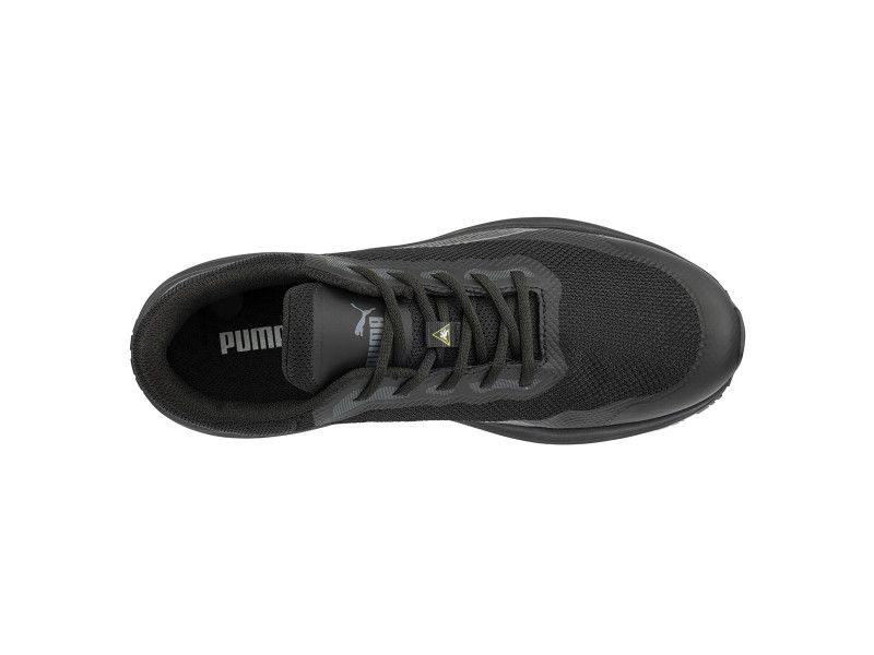 Puma Spark ST BLK Low O1 FO SR munkavédelmi cipő – A Puma Spark egy sportos, könnyű és kényelmes munkacipő, amely ideális a vendéglátásban dolgozók számára. A fémmentes konstrukció, a csillapító IMPULSE.LITE középtalp és a SPLASH GUARD membrán egész napos kényelmet biztosítanak. A futócipők ihlette, folyadékelvezető barázdákkal ellátott csúszásgátló talp kiváló tapadást nyújt, míg a légáteresztő hálós felsőrész FUSE.TEC megerősítéssel tartós és rugalmas viseletet kínál.