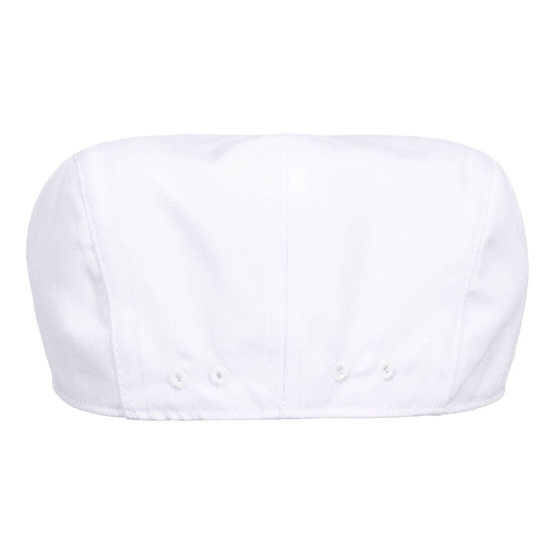 Kopásálló, tartós, színtartó anyagból készült séf sapka, amely alapanyag nem zsugorodik, megőrzi a termék eredeti méretét a mosások után, gépben mosható (60°C) és a jobb lélegzőképességért fűző bujtatóval rendelkezik.