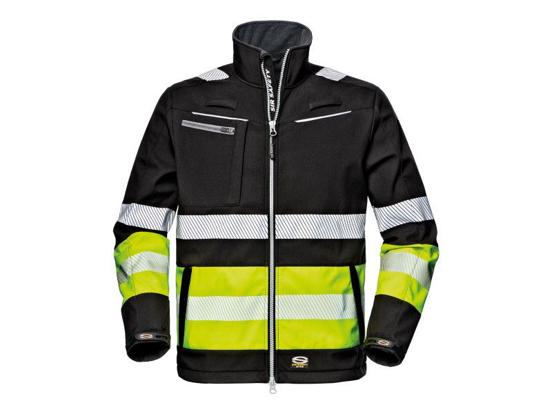 Sir Safety System Hi-Vis Contrast softshell felsőJól láthatósági softshell felső 320 g/m2 súlyú, ripstop stretch anyagból, TPU laminálással és mikroflíz belsővel a kültéri munkavégzéshez.Főbb jellemzők:Elasztikus, időjárásálló softshell anyag kényelmes viselethezKétirányú középső cipzár, mellzseb, oldalzsebek és kitűzőtartó a funkcionalitásértSzegmentált, hőragasztott fényvisszaverő csíkok a láthatóságértKontrasztos sárga betétek a jól láthatósági szabványnak megfelelőenIdeális kültéri munkához, ahol fontos a biztonság és a komfortEz a softshell kabát megfelelő védelmet, mozgásszabadságot és láthatóságot kínál változékony időjárási körülmények között is.
