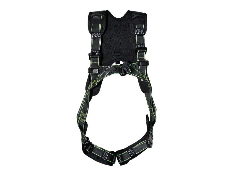 A testheveder 2 pontos textilhurkos mellkas rögzítéssel és 1 háti D-gyűrűvel ellátva a leesés megállításához. Állítható váll-, combpántok és deréköv. A vállpántok kombinált csatokkal rendelkeznek, a combhevederek és a derékpánt pedig automatikus csatokkal van ellátva a könnyű beállítás érdekében. Továbbá 2 szerszámtartó hurokkal hátul a kényelmes munkavégzéshez. - Megfelel az EN 361:2002 szabványnak, maximum 140 kg súlyú felhasználó használhatja. Speciálisan párnázott hálós hálót használtak a jobb ütéselnyelés és a felhasználó kényelme érdekében. Méret: M-L.